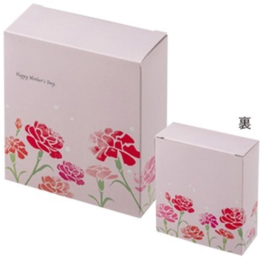 落ち着いた優しいピンクに赤いカーネーションが、上品で可愛いデザインです。